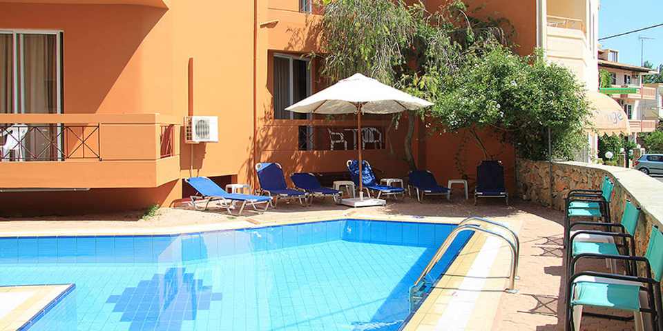 It offers 30 spacious rooms decorated with traditional Cretan cultural elements. It is located a few metres from one of the most beautiful and organised beaches in Chania Prefecture offering a broad choice of sea sports. Very frequent transportation to and from the centre of Chania city is available including urban and long distance buses, and taxis.