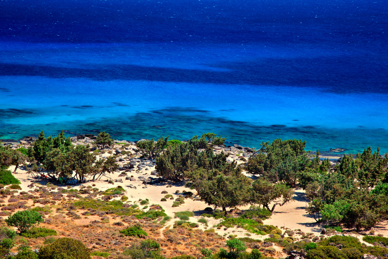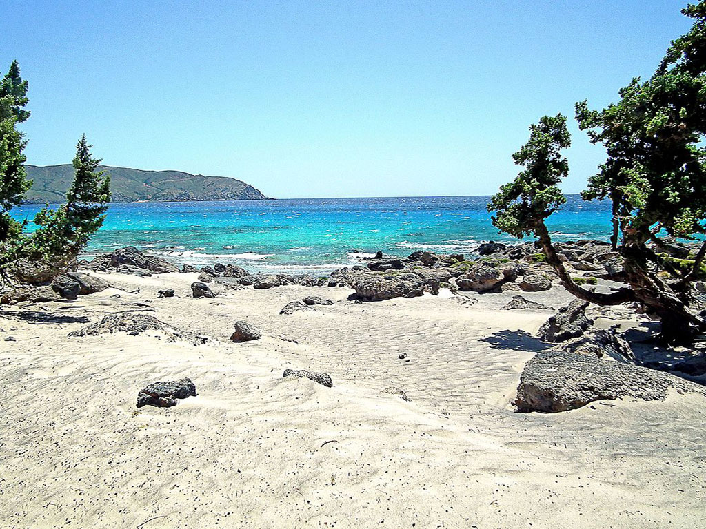 The beach is located about 1 km east of the famous lagoon of Elafonisi and 76 km southwest of the city of Chania. It is filled with juniper trees that look like cedars and sand dunes. The cedar forest stretches along the beach in an area of about 110 acres. The beach has white sand and the sea crystal clear turquoise waters. It is mostly rocky but there are several spots with sand.