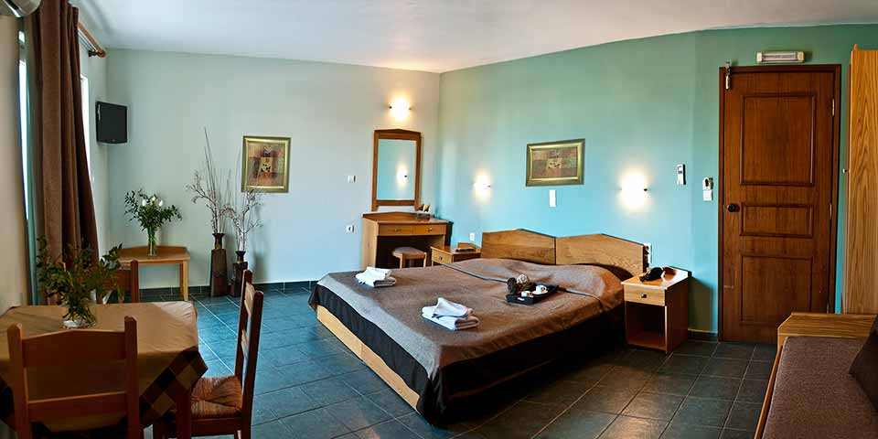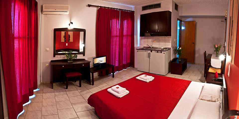 All the studios – apartments are equipped with fridge, kitchen, air condition, telephone, safe box, T.V.