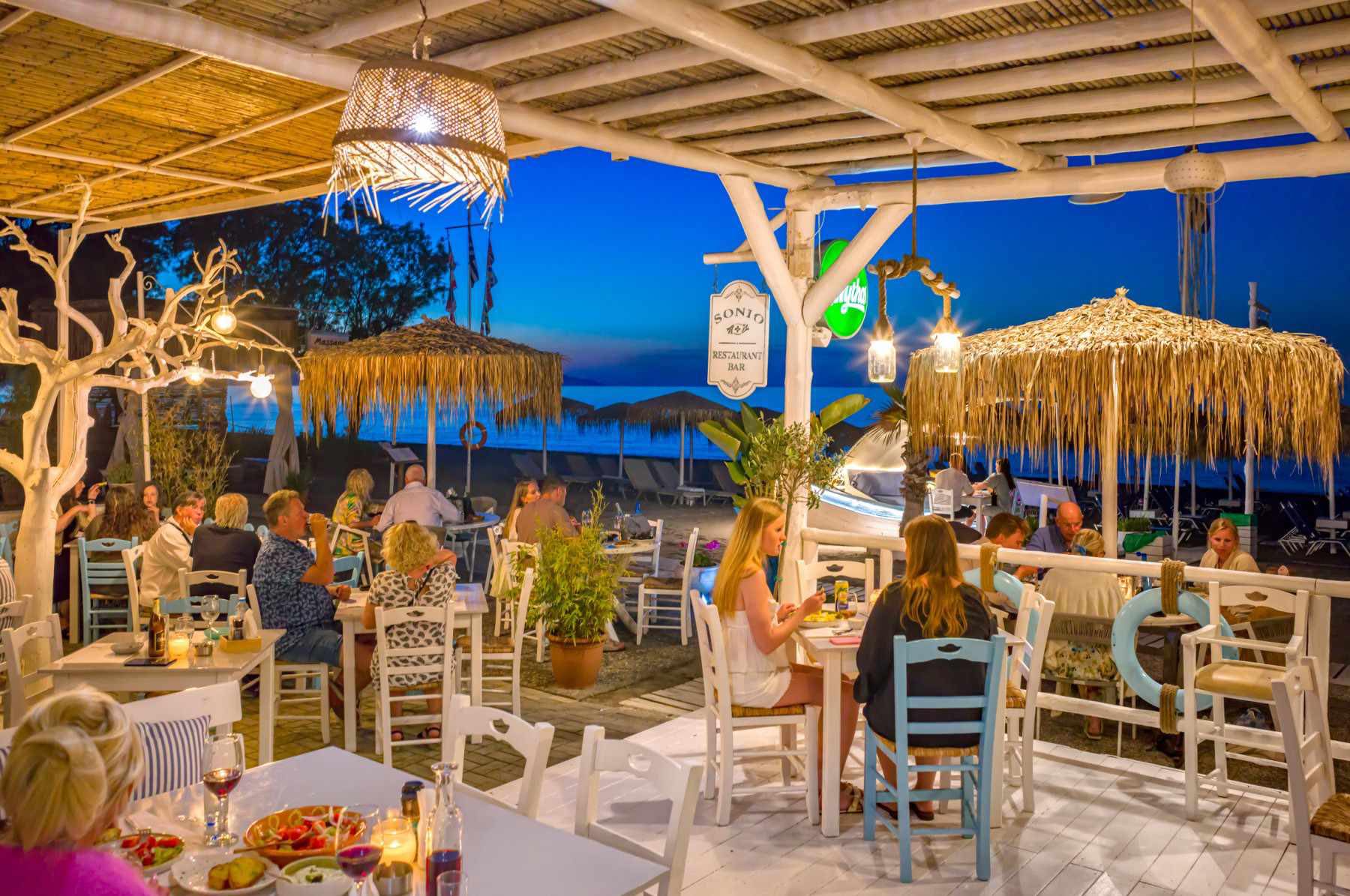 Are you visiting Platanias? Make sure to spend some time in Sonio Beach Restaurant, which is situated in the best waterfront location overlooking the beach of Platanias, 400 meter west of the square to the right. We are open from sunrise to sunset. Sonio Beach Restaurant ensures you get to enjoy some really tasty well-prepared Cretan traditional kitchen, international dishes and of course our own special cuisine. Quality wines, cocktails and Raki are always on the drink menu as much more. With charm and warm service from the always present owner Stathis and his staff, the restaurant has become well-known and popular to our repeater guests and many local visitors of Platanias village.