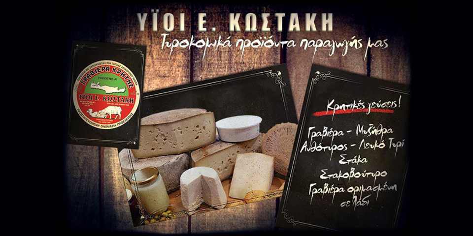 Με έναν αιώνα εμπειρία στην τυροκόμηση, η οικογένεια Κωστάκη ξεκίνησε τη συστηματική λειτουργία του τυροκομείου της στις Τζιτζιφές Αποκορώνου το 1975, παράγοντας αυθεντικά κρητικά τυριά µε παραδοσιακές συνταγές αλλά µε όλες τις σύγχρονες τεχνολογικά μεθόδους Η προσεκτική επιλογή του γάλακτος από ζώα που βόσκουν ελεύθερα σε ημιορεινές και ορεινές περιοχές του νομού Χανίων, δίνουν εξαιρετικά τυριά µε άριστη ποιότητα και γεύση ανάμεσα στα οποία και η ονομαστή γραβιέρα Κρήτης Κωστάκη από πρόβειο γάλα που ωριμάζει για 3 έως 6 μήνες. Τα καταστήματα τυροκομίας Κωστάκη θα τα βρείτε στην Δημοτική αγορά Χανίων και μπορείτε να προμηθευτείτε μία μεγάλη ποικιλία τυριών από το τυροκομείο μας καθώς και διάφορα παραδοσιακά κρητικά προϊόντα.